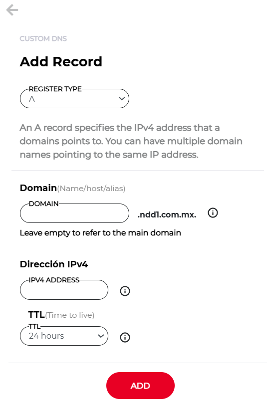 - At the bottom, click on ‘Add record’ and enter the requested information to add the records you need. Then click ADD RECORD.